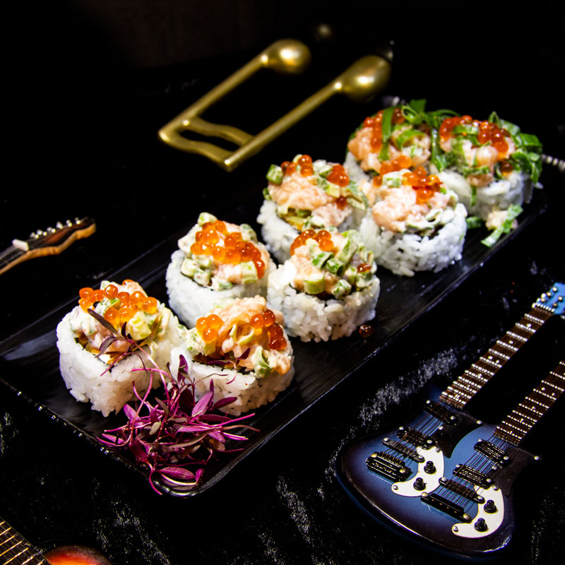 במילוי סלמון, בצל ירוק, פיסטוק וספייסי מיונז